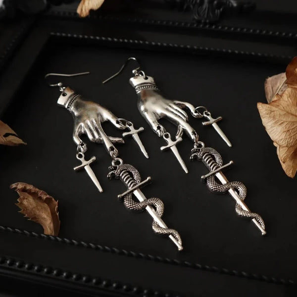 Elevate your accessory collection with striking drop earrings that beautifully blend mystical elegance with daring design. These earrings, crafted from a resilient zinc alloy, feature geometric forms that reflect the enchanting allure of the night. Their shimmering silver-tone finish adds an edge to any outfit, inviting curiosity and adventure. Perfect for those who appreciate contemporary style infused with a touch of rebellion.