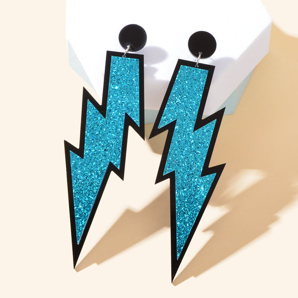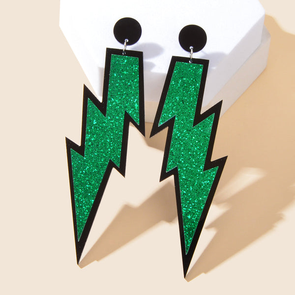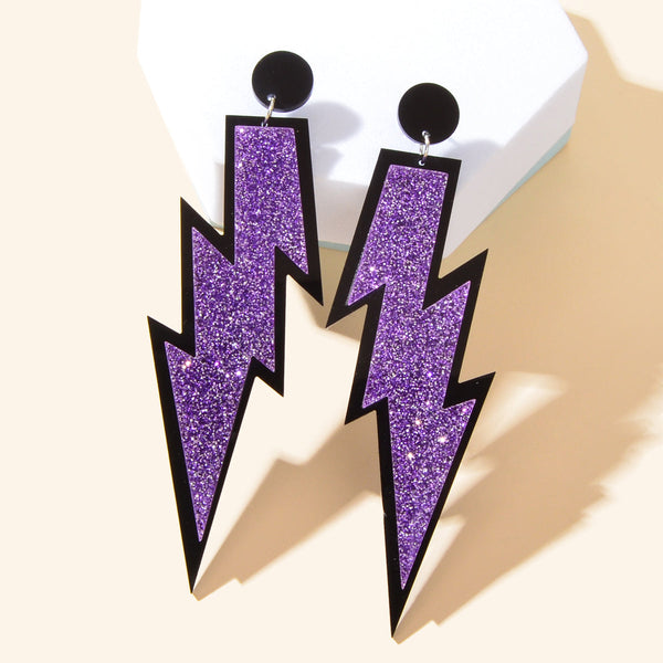 Sparkling Stylish Acrylic Lightning Statement Long Pendant Dangle Party Earrings-6