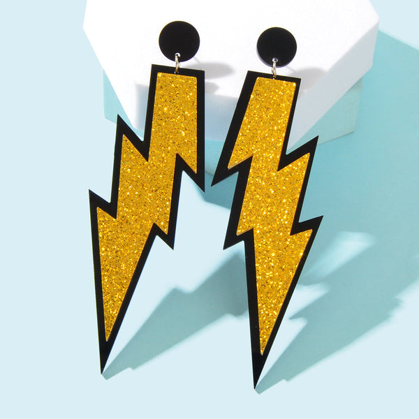 Sparkling Stylish Acrylic Lightning Statement Long Pendant Dangle Party Earrings-1