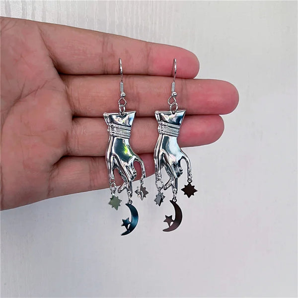 Triangular shapes shimmer with an ethereal glow in these earrings, inviting you to embrace cosmic allure. Crafted from zinc alloy, the gold-tone and silver-tone finishes intertwine in a geometric pattern inspired by celestial bodies, perfect for those with an adventurous spirit. A touch of neo-gothic charm enhances any outfit, making them ideal for Halloween or any occasion that calls for magic.