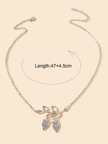 Fashion Designer Silver Chain Lover Owl Branch Necklace Female Accessories Gift-1