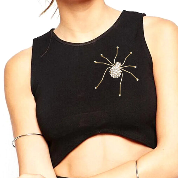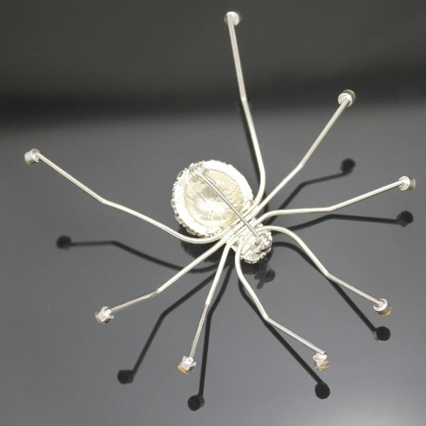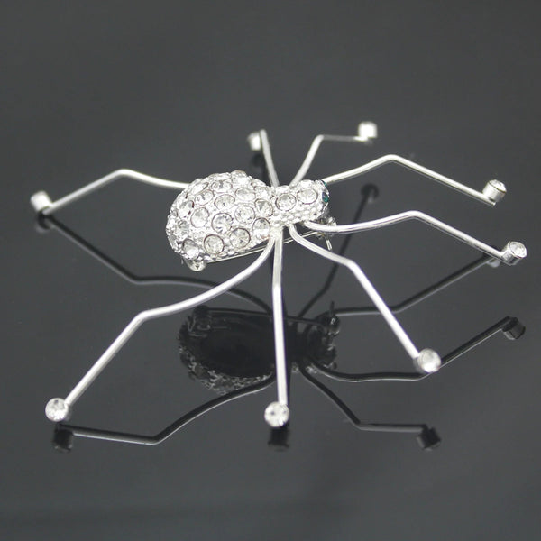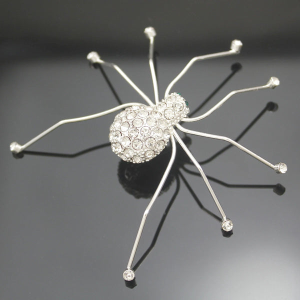 Large rhinestone spider brooch is runway-level drama for hats, jackets, and dresses.