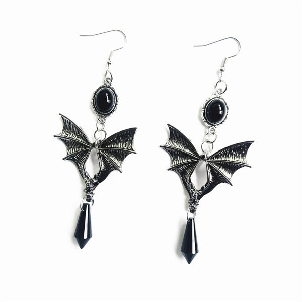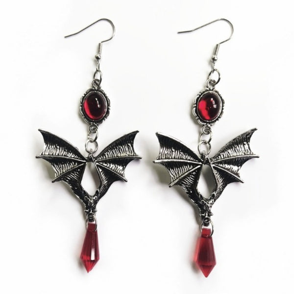 Vampire bat earrings with red stones are witchy yet elegant enough for daily gothic style.