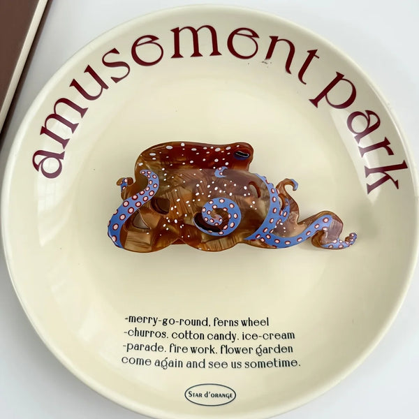 Clip in this acetate octopus claw and add eccentric undersea speakeasy drama to updos and messy buns.