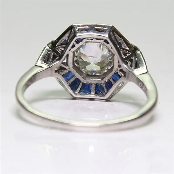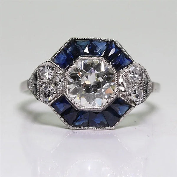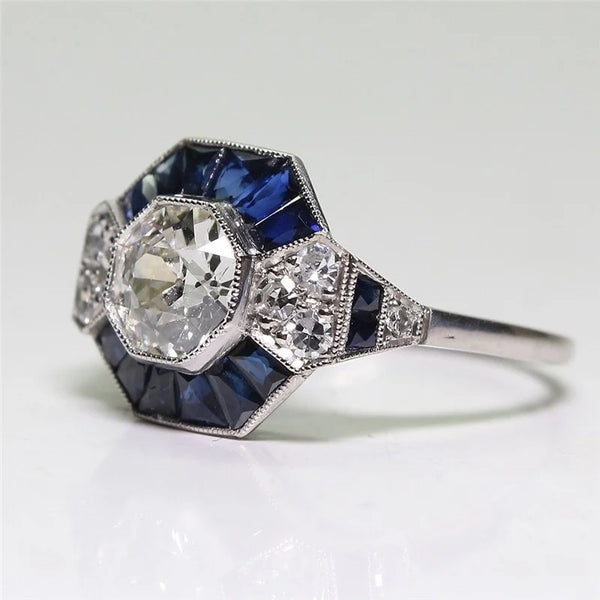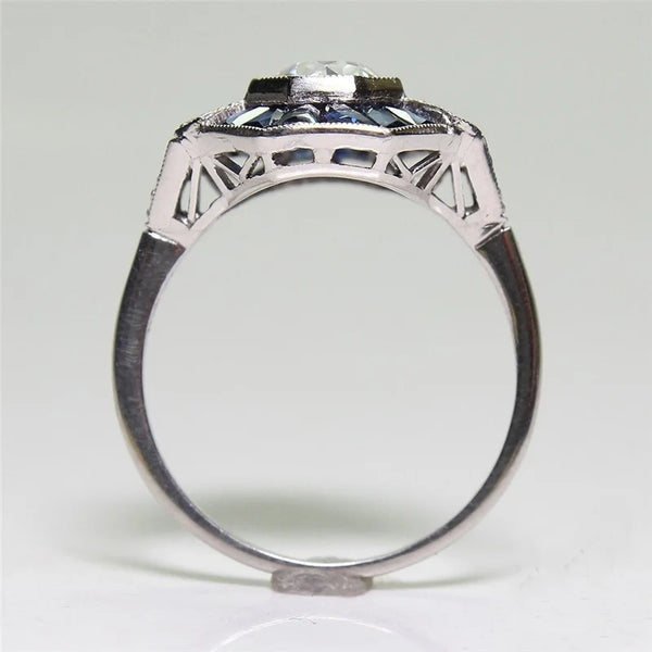 Immerse yourself in the architectural elegance of this ring, where art deco flair meets modern sophistication. Designed to capture attention, this striking piece features a tension setting that highlights the mesmerizing sapphire hue. Crafted from durable zinc alloy, its sleek design offers a unique balance of geometric allure and vintage-inspired charm. Perfect for elevating any outfit, this ring is a stunning choice for any occasion.