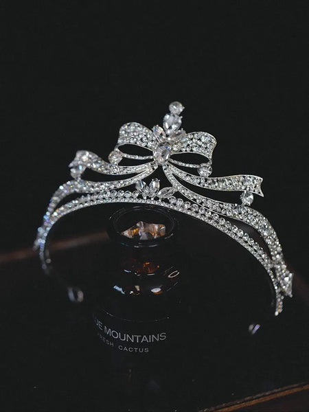 A radiant headpiece designed to add an enchanting touch to any special occasion. This tiara features a beautiful bow-knot shape adorned with rhinestone and imitation pearls, perfect for weddings and engagements. With its delicate craftsmanship, it embodies the essence of artful elegance. Elevate your bridal look with this exquisite accessory.