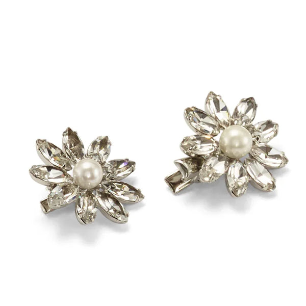 A floral whisper dances through time, capturing the essence of nostalgia. These hair clips, adorned with softly glimmering rhinestones, embody a touch of heirloom grace and elevate any hairstyle with their refined floral design. Perfect for a bridal gathering or a refined soirée, they beautifully complement both flowing locks and intricate updos. Gift it to a loved one or keep it close as a reminder of cherished moments.