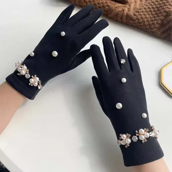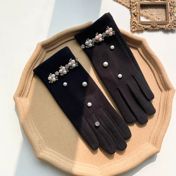 Stay warm and dazzling in these pearl and rhinestone winter gloves that glam up every steering wheel and coffee run.
