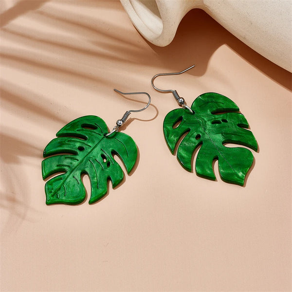 Green tropical leaf earrings bring instant vacation vibes, like wearing a hidden island villa by your face.