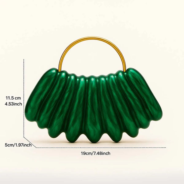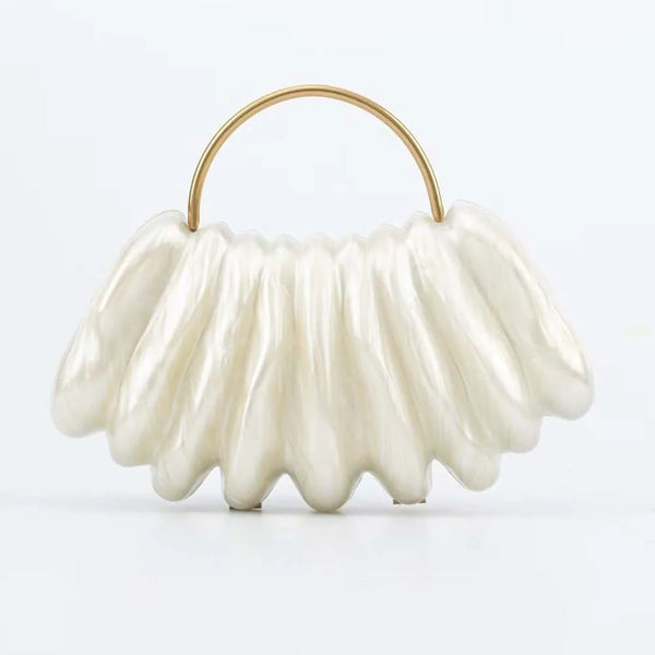 Carry this wave-pattern acrylic clutch to weddings or parties and let the shell-like marble shimmer catch every eye.