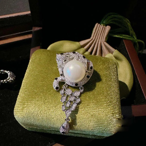 Ribbon brooch with gem-style stones, shell beads, and cheetah detailing is a tiny piece of couture you can pin anywhere.