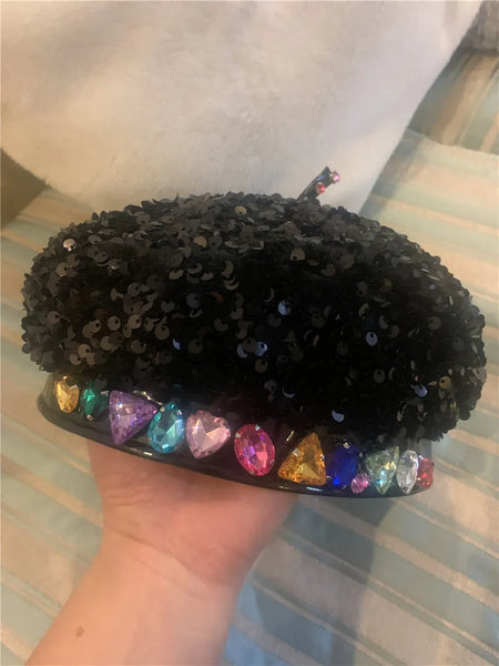 Top off your outfit with this sequin beret and become the sparkling party queen under every nightclub light.