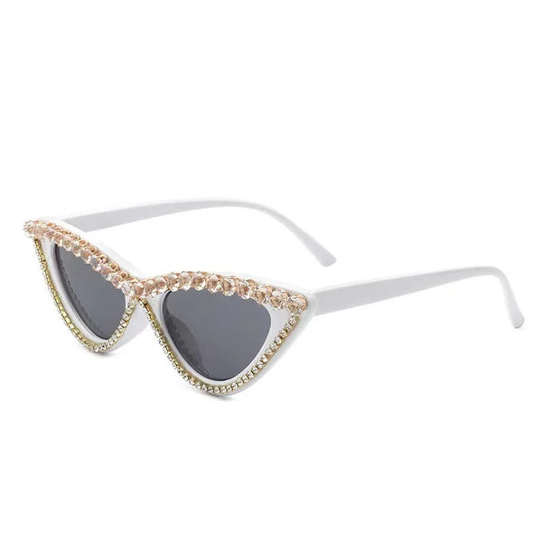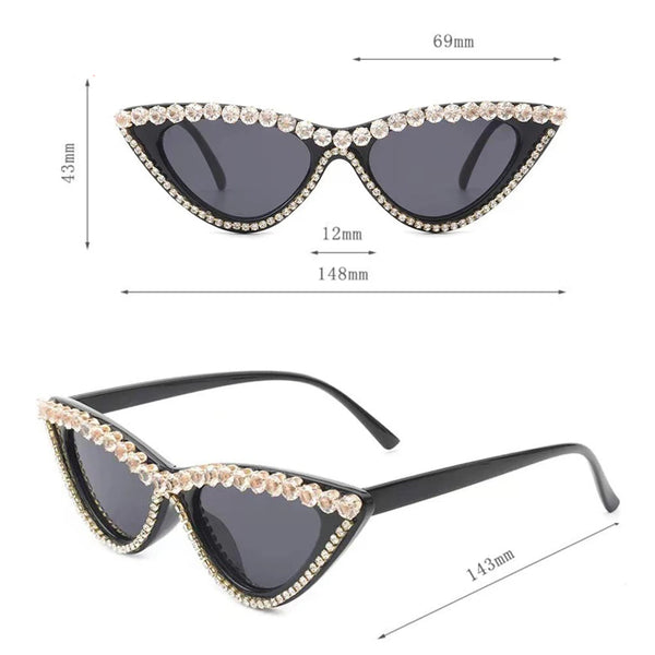 Seductive and chic, these sunglasses elevate any ensemble with a whisper of retro glamour. Adorned with rhinestone embellishments and crafted from lightweight resin, their oversized cat-eye shape captures an Art Deco edge while ensuring maximum comfort. Experience the sunlight filtering through the UV400 acrylic lenses, perfect for making a statement in any setting, from day to night. Evoke the enchantment of classic Hollywood with every look.