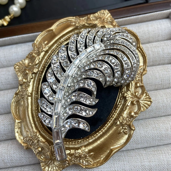 Elevate your ensemble with the "Alarion" Rhinestone Feather Brooch, a sophisticated accessory that captures light and attention in equal measure. This exquisite feather-shaped design, adorned with shimmering rhinestones, adds an air of elegance to any outfit—from formal occasions to refined everyday wear. The intricate detailing and radiant sparkle make it a statement piece that transforms your look into something truly memorable. Perfect for those who appreciate timeless glamour with a contemporary edge.