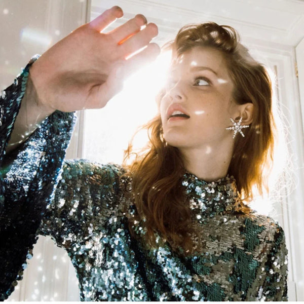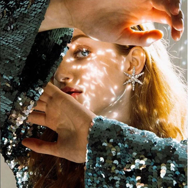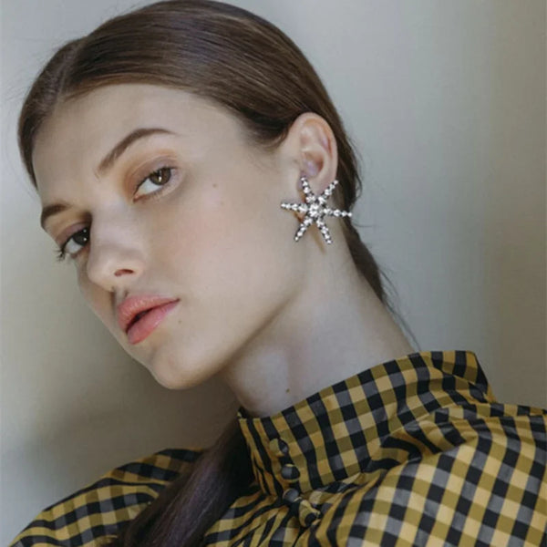 Embodying the essence of cinematic elegance, these earrings captivate with their striking geometric star design, accentuating the face with magnetic charm. Crafted from radiant rhinestones set in durable copper, they shimmer with every movement, making them the perfect statement accessory for any occasion. Effortlessly versatile, they elevate both evening gowns and casual outfits, ensuring the wearer commands attention in style.
