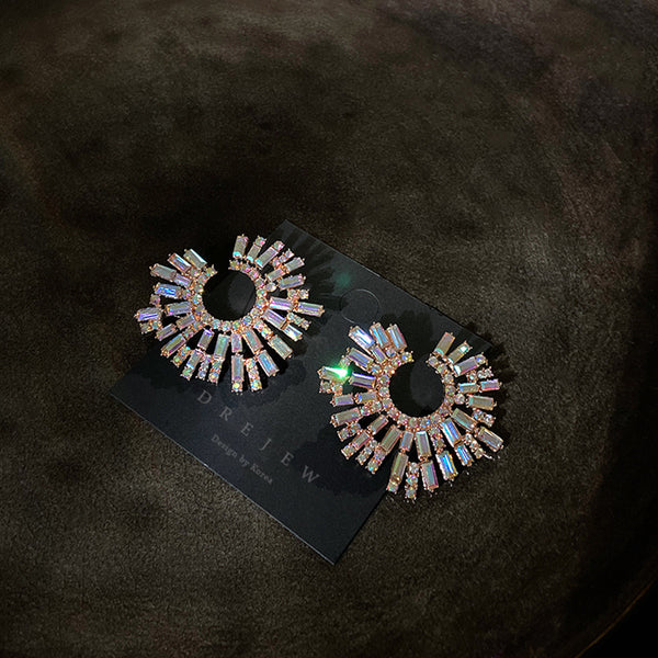 Elevate your accessory game with the Rhinestone Stud Earrings, where geometric allure meets retro charm. These earrings shimmer with a carefully curated array of rhinestones, mirroring the glamor of Hollywood's golden age while showcasing a bold design that exudes confidence. Crafted from a copper alloy, they offer secure wear with their push-back finding, making every appearance a cinematic moment. Perfect for any occasion, they will undoubtedly enhance your look and leave a lasting impression.