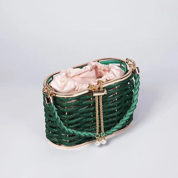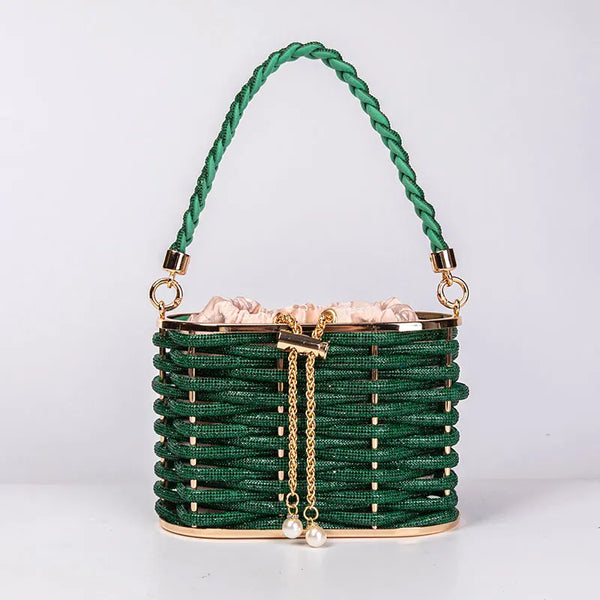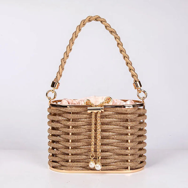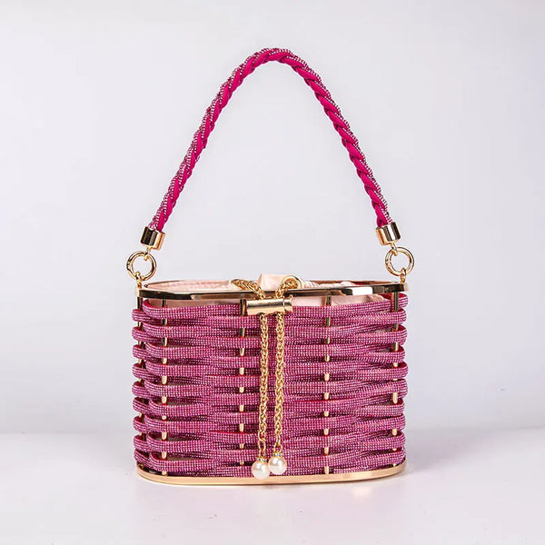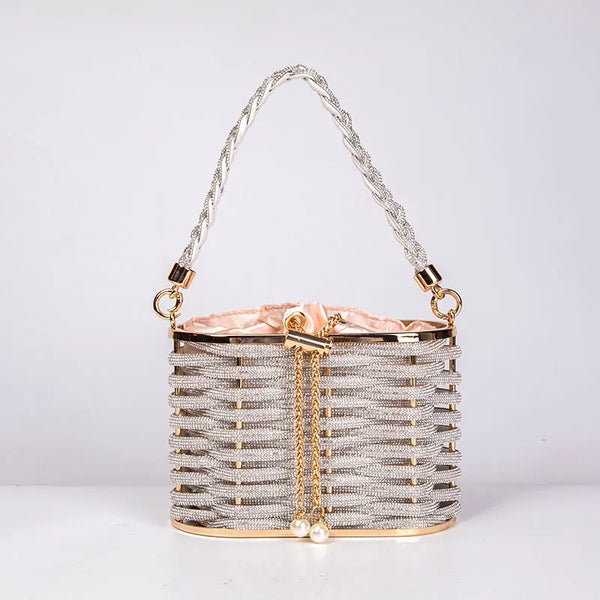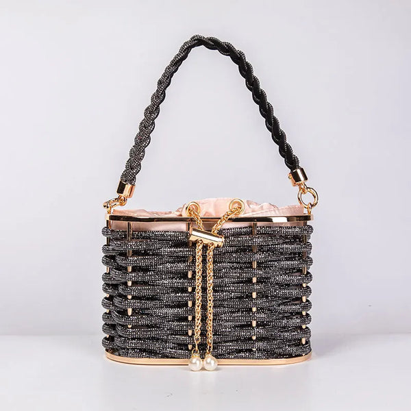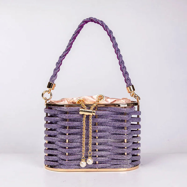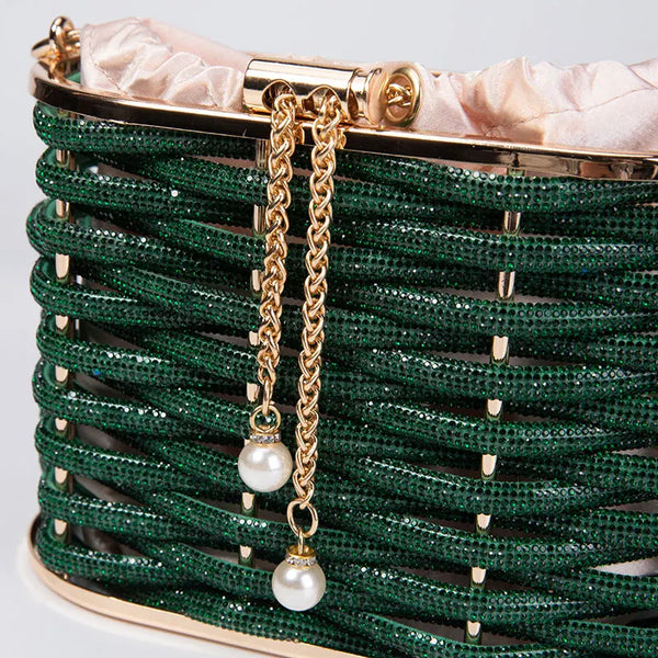 Reach for this pearl and rhinestone clutch whenever you want your handbag to shine like a jewel box.