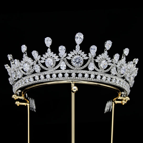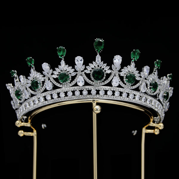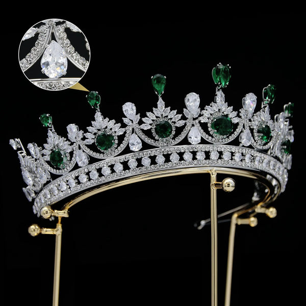 Step into royal fantasy with this faux emerald zircon diadem, crafted with layered sparkle that glimmers under stage lights, candlelight, or sunshine. Whether for brides, pageants, proms, or formal events, this crown transforms your look into a regal, unforgettable vision of elegance and power.