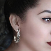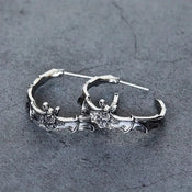Embrace your adventurous spirit with the enchanting Morrigan Bat Hoop Earrings. Designed for the bold and the daring, these exquisite hoops capture attention with their whimsical bat-shaped elegance. Each earring serves as a daring symbol, inviting you to defy conventions and celebrate your unique journey. Let these striking accessories become a part of your story, adding a touch of romance and excitement to any ensemble. Daring to be different has never looked so alluring.