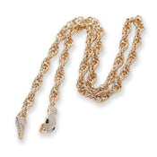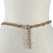 Experience luxurious elegance with "Ophira," a gold-tone chain belt featuring a snake head encrusted with exquisite clear and jet rhinestones and a tail embellished with clear rhinestones. This statement piece is perfect for adding a touch of glamour to any look.