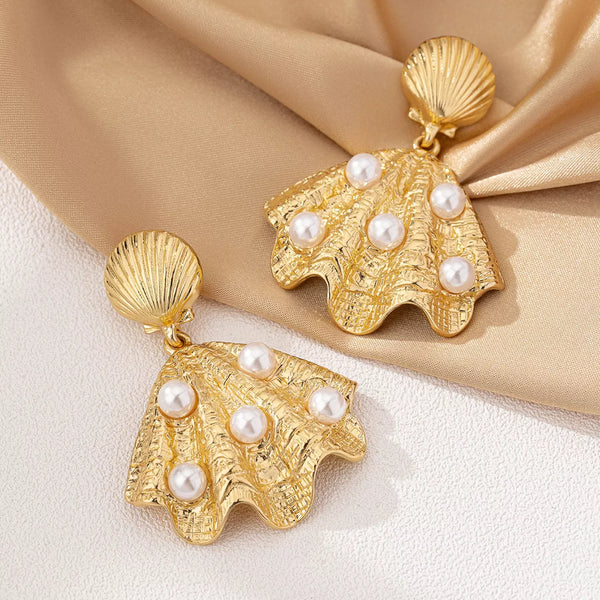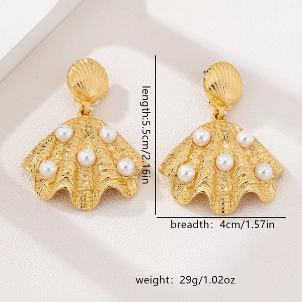Elevate your elegance with the "Uma" Shell Pearl Drop Earrings, featuring a graceful length of 2.2 inches that delicately frames your neckline. These earrings showcase shells with faux pearls that catch the light with every movement, offering a refined shimmer that complements both formal and casual attire. Designed for sophistication, their lightweight construction ensures comfort while enhancing your natural beauty. Perfect for special occasions or adding a touch of timeless charm to everyday looks, the "Uma" earrings are a versatile accessory that embodies understated luxury.