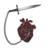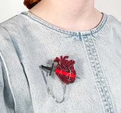 Turn heads and start conversations with this "Ravenna" Brooch! Perfect for the cardio-thoracic surgeon in your life, or just someone who needs a fun way to break the ice. You'll also be rest assured that the tiny removable sword is securely attached to a silver-tone chain so it can never be lost! Handmade in the USA by Vinca, an artist in Austin Texas, this stunning brooch is made from various acrylics with a secure pin-back. A conversation piece that's sure to be a hit!