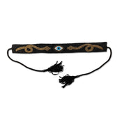 An exquisite piece of artistry for the modern fashionista. Black-beaded in a snake pattern for an elegant and exclusive look, it ties in the back for a perfect fit. The belt also makes a great hat band (hat not included). Be the envy of any occasion with this stunning belt!