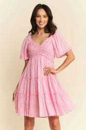 The Jacquard Checker Smocking Tiered Dress is a charming and feminine piece. Its intricate jacquard checker pattern adds a unique texture to the design. The smocking detail at the top creates a flattering and comfortable fit. The tiered silhouette gives the dress a stylish and flowy appeal, perfect for any occasion.