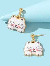 Embrace the elegance of the "Alethia" Earrings, where whimsy meets sophistication. Crafted with two enchanting white enamel cats in mid-prance, these earrings capture a serene moment frozen in time. Each cat is delicately suspended from polished gold-tone hearts, creating a stunning visual ballet that embodies grace and charm.