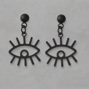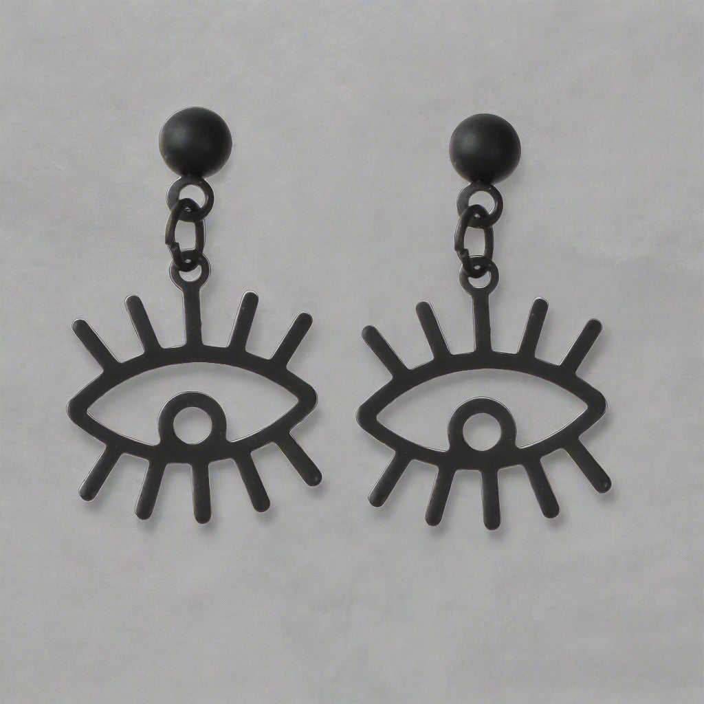 Discover the enchanting allure of the Ethelle Earrings, where minimalist artistry meets profound symbolism. These captivating black eye drop earrings feature a singular, stylised eye that gracefully dangles from your lobe, creating a striking statement. Outlined in sleek black and accented with delicate gold-tone details, they embody a perfect blend of mystery and elegance.