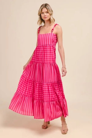 Stand out in style with this Stripe Tiered Maxi Dress featuring a colorful chain strap. The tiered design adds movement and flow to the dress, creating a flattering silhouette. The colorful chain strap adds a fun and unique touch, making it a statement piece. Perfect for summer events or beach outings, this maxi dress exudes a playful and stylish vibe. Embrace a vibrant and trendy look with this must-have dress in your collection.